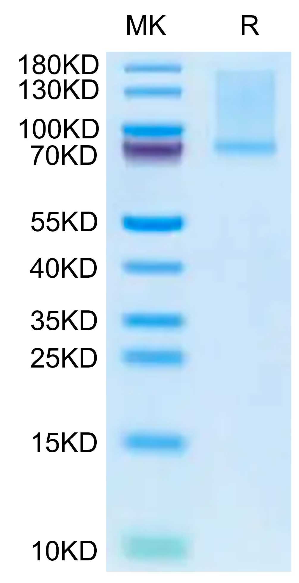 Molecular Mass : | The protein has a predicted MW of 73.09 kDa. Due to glycosylation, the protein migrates to 74-90 kDa based on Tris-Bis PAGE result. |