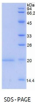 Molecular Mass : | The protein has a calculated MW of 18.2kDa. The protein migrates as 20kDa on a SDS-PAGE gel under reducing (R) condition due to glycosylation. |