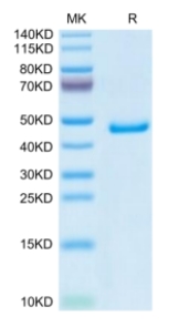 | Molecular Mass : | The protein has a predicted MW of 39.5 kDa. Due to glycosylation, the protein migrates to 46-50 kDa based on Tris-Bis PAGE result. |
