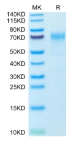 | Molecular Mass : | The protein has a predicted MW of 38.1 kDa. Due to glycosylation, the protein migrates to 68-75 kDa based on Tris-Bis PAGE result. |