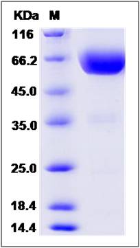 | Molecular Mass : | The recombinant mouse HAVCR2/Fc is a disulfide-linked homodimer. The reduced monomer comprises 411 amino acids and has a predicted molecular mass of 45.9 kDa. The apparent molecular mass of the protein is approximately 58-66 kDa in SDS-PAGE under reducing conditions due to glycosylation. |