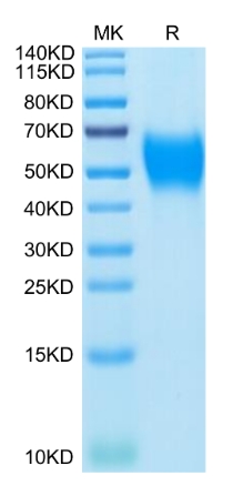 Molecular Mass : | The protein has a predicted MW of 27.4 kDa. Due to glycosylation, the protein migrates to 45-70 kDa based on Tris-Bis PAGE result. |