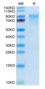 | Molecular Mass : | The protein has a predicted MW of 45.1 kDa. Due to glycosylation, the protein migrates to 75-82 kDa based on Tris-Bis PAGE result. |