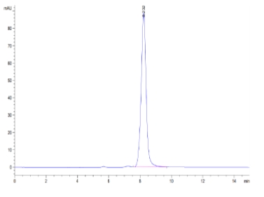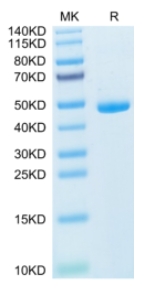 | Molecular Mass : | The protein has a predicted MW of 44.9 kDa. Due to glycosylation, the protein migrates to 45-50 kDa based on Tris-Bis PAGE result. |