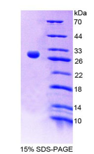 29kDa as determined by SDS-PAGE reducing conditions. |
