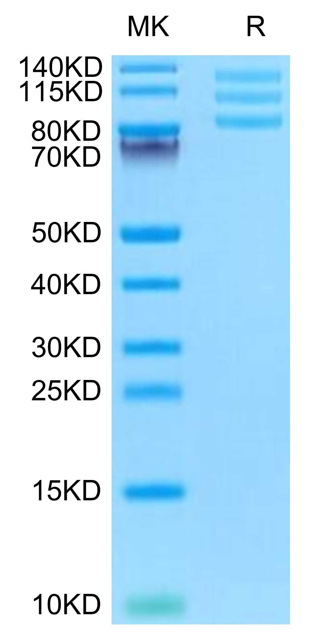 | Molecular Mass : | The protein has a predicted MW of 111.6(ITGAV)&76.6(ITGB8) kDa. Due to glycosylation, the protein migrates to 80-140 kDa based on Tris-Bis PAGE result. |