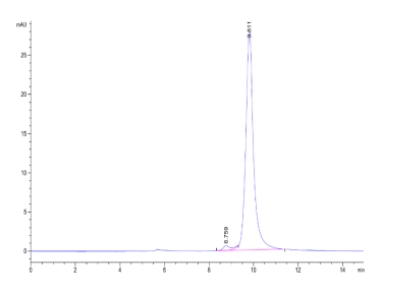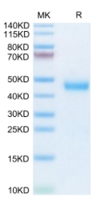 | Molecular Mass : | The protein has a predicted MW of 29.9 kDa. Due to glycosylation, the protein migrates to 40-50 kDa based on Tris-Bis PAGE result. |