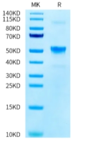 | Molecular Mass : | The protein has a predicted MW of 42.3 kDa. Due to glycosylation, the protein migrates to 43-50 kDa based on Tris-Bis PAGE result. |