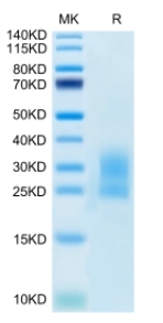 | Molecular Mass : | The protein has a predicted MW of 17.5 kDa. Due to glycosylation, the protein migrates to 24-35kDa based on Tris-Bis PAGE result. |
