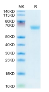 | Molecular Mass : | The protein has a predicted MW of 50 kDa. Due to glycosylation, the protein migrates to 60-70 kDa based on Tris-Bis PAGE result. |