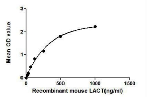 LCAT (Phosphatidylcholine-sterol acyltransferase) is an enzyme in the extracellular metabolism of plasma lipoproteins, which converts cholesterol and phosphatidylcholines (lecithins) to cholesteryl esters and lysophosphatidylcholines. It is reported that APOA1 (Apolipoprotein A-I) acts as a cofactor for the LCAT. Thus, a binding ELISA assay was conducted to detect the association of LCAT with APOA1. Briefly, recombinant rat LCAT were diluted serially in PBS with 0.01% BSA (pH 7.4). Duplicate samples of 100uL were then transferred to APOA1-coated microtiter wells and incubated for 2h at 37°C. Wells were washed with PBST and incubated for 1h with anti-LCAT pAb, then aspirated and washed 3 times. After incubation with HRP labelled secondary antibody, wells were aspirated and washed 3 times. With the addition of substrate solution, wells were incubated 15-25 minutes at 37°C. Finally, add 50µL stop solution to the wells and read at 450nm immediately. The binding activity of LCAT with APOA1 was shown and this effect was in a dose dependent manner. |