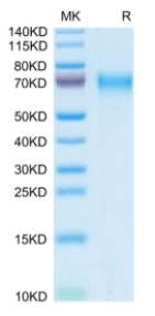 | Molecular Mass : | The protein has a predicted MW of 48.3 kDa. Due to glycosylation, the protein migrates to 67-75 kDa based on Tris-Bis PAGE result. |