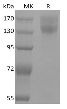 Molecular Mass : | The recombinant Mouse Lepr Protein has a predicted molecular mass of 118.5kDa, it migrates with an apparent molecular mass of 130-190kDa under reducing conditions. |