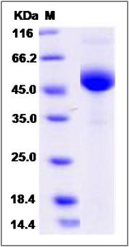 Molecular Mass : | The recombinant mouse LY96/Fc is a disulfide-linked homodimer. The reduced monomer comprises 383 amino acids and has a predicted molecular mass of 43.4 kDa. The apparent molecular mass of the protein is approximately 47 kDa in SDS-PAGE under reducing cond |