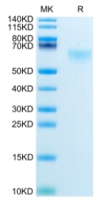 | Molecular Mass : | The protein has a predicted MW of 32.5 kDa. Due to glycosylation, the protein migrates to 60-70 kDa based on Tris-Bis PAGE result. |