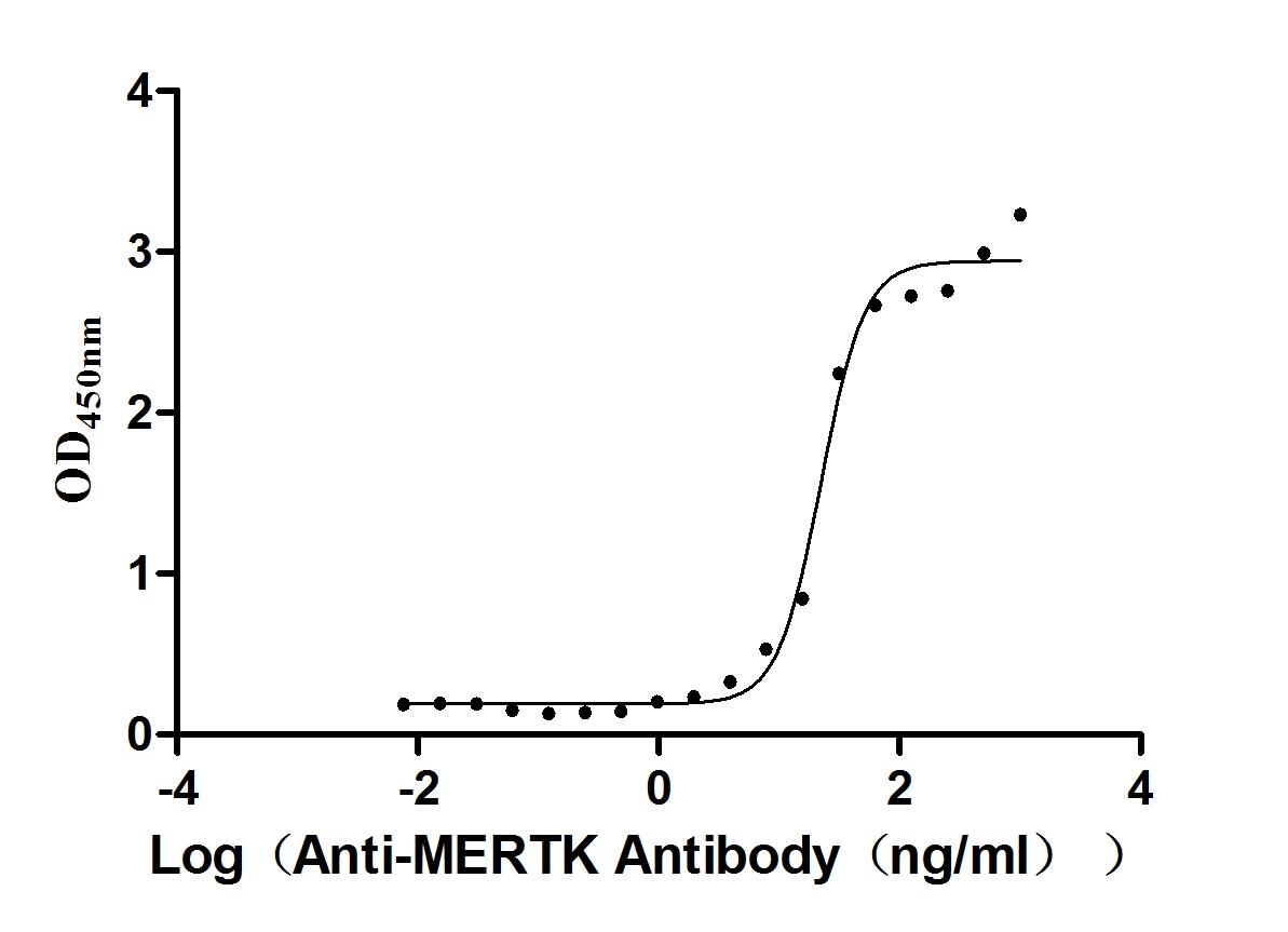 | Bio-activity : | Measured by its binding ability in a functional ELISA. Immobilized Mouse Mertk at 2 μg/mL can bind anti-MERTK recombinant antibody, the EC50 is 19.22-25.80 ng/mL. |