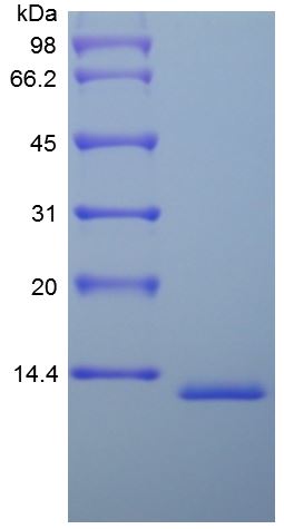 Approximately 12.5 kDa, a single non-glycosylated polypeptide chain containing 115 amino acids. |