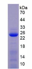 24kDa as determined by SDS-PAGE reducing conditions. |