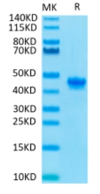 | Molecular Mass : | The protein has a predicted MW of 35.4 kDa. Due to glycosylation, the protein migrates to 40-50 kDa based on Tris-Bis PAGE result. |