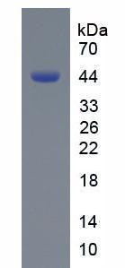 44kDa as determined by SDS-PAGE reducing conditions. |