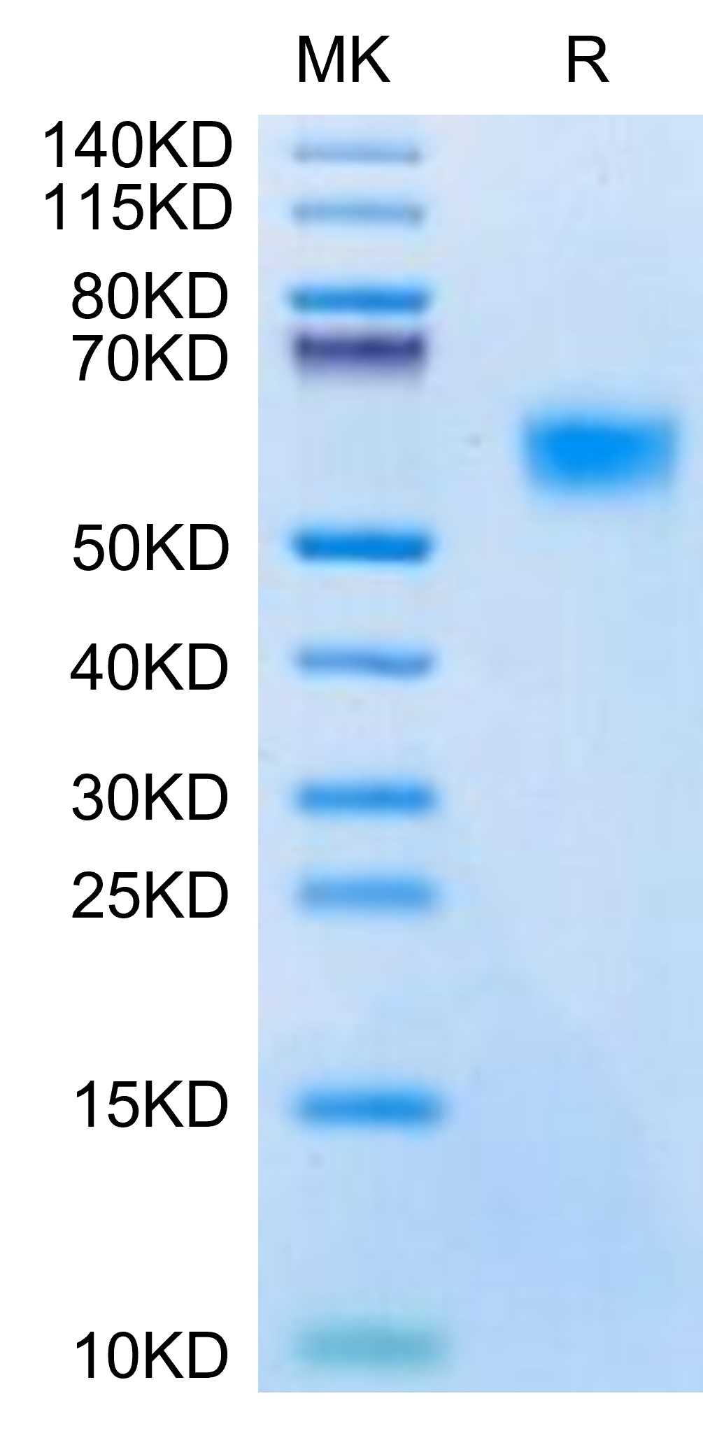 Molecular Mass : | The protein has a predicted MW of 32.92 kDa. Due to glycosylation, the protein migrates to 55-65 kDa based on Tris-Bis PAGE result. |