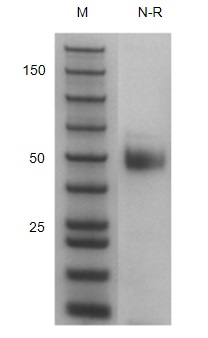 | Molecular Mass : | The protein has a calculated MW of 33kDa.The non-reducing (N-R) heterodimer protein migrates as 40-60 kDa due to glycosylation |