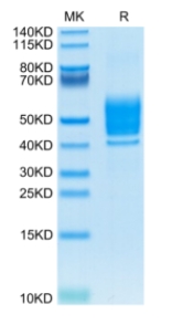 | Molecular Mass : | The protein has a predicted MW of 34.5 kDa. Due to glycosylation, the protein migrates to 40-60 kDa based on Tris-Bis PAGE result. |