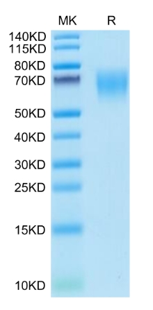 | Molecular Mass : | The protein has a predicted MW of 35.9 kDa. Due to glycosylation, the protein migrates to 55-75 kDa based on Tris-Bis PAGE result. |