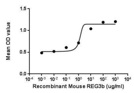 Regenerating Islet Derived Protein 3 Beta (REG3b) also known as PAP-I and HIP is bactericidal C-type lectin which acts against several intestinal Gram-positive bacteria and Gram-negative bacteria. The Reg family proteins have been implicated in a range of physiological processes including acting as acute phase reactants, lectins, survival/growth factors for insulin-producing pancreatic beta-cells, neural cells, and epithelial cells of the digestive system. To test the effect of REG3b on cell proliferation of SK-N-SH, SK-N-SH cells were seeded into triplicate wells of 96-well plates at a density of 5,000 cells/well and allowed to attach overnight, then the medium was replaced with serum-free standard DMEM prior to the addition of various concentrations of REG3b. After incubated for 72h, cells were observed by inverted microscope and cell proliferation was measured by Cell Counting Kit-8 (CCK-8). Briefly, 10µL of CCK-8 solution was added to each well of the plate, then measure the absorbance at 450nm using a microplate reader after incubating the plate for 1-4 hours at 37°C .Cell proliferation of SK-N-SH cells after incubation with REG3b for 72h observed by inverted microscope was shown. The dose-effect curve of REG3b was shown. It was obvious that REG3b significantly promoted cell proliferation of SK-N-SH cells. The ED50 for this effect is typically 3.685 - 84.37 ng/mL. |