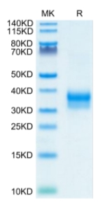 | Molecular Mass : | The protein has a predicted MW of 26.7 kDa. Due to glycosylation, the protein migrates to 30-40 kDa based on Tris-Bis PAGE result. |