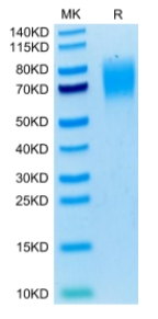 | Molecular Mass : | The protein has a predicted MW of 39 kDa. Due to glycosylation, the protein migrates to 65-85 kDa based on Tris-Bis PAGE result. |