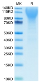 Molecular Mass : | The protein has a predicted MW of 23.6 kDa. Due to glycosylation, the protein migrates to 80-120 kDa based on Tris-Bis PAGE result. |