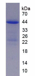 42kDa as determined by SDS-PAGE reducing conditions. |