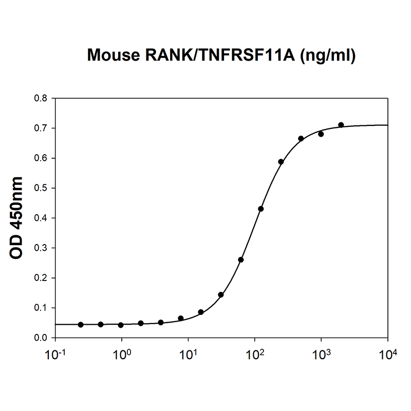 | Bio-activity : | Measured by its binding ability in a functional ELISA with Mouse RANKL/TNFSF11. The ED50 range ≤ 200 ng/mL. |