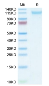 | Molecular Mass : | The protein has a predicted MW of 86.1 kDa. Due to glycosylation, the protein migrates to 110-130 kDa based on Tris-Bis PAGE result. |