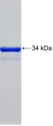 | Form : | The purified protein was lyophilized from sterile phosphate-buffered saline (PBS: 58 mM Na₂HPO₄, 17 mM NaH₂PO₄, 68 mM NaCl, pH 8.0). Prior to lyophilization, 5% (w/v) trehalose and 5% (w/v) mannitol were incorporated as cryoprotective excipients. The protein was eluted with a buffer containing 100 mM reduced glutathione (GSH). |