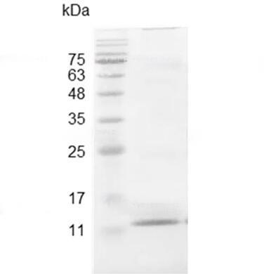 Molecular Mass : | The protein has a calculated MW of 9.42 kDa. The protein migrates as 11-17 kDa under reducing condition (SDS-PAGE analysis). |