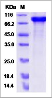 | Product Overview : | Recombinant Rat Erbb4 (AAQ77349.1) (Met1-Pro651), fused with a polyhistidine tag at the C-terminus, was produced in Human Cells. |