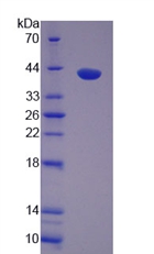 40kDa as determined by SDS-PAGE reducing conditions. |
