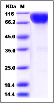 | Product Overview : | Recombinant Rat Il17ra (NP_001101353.2) (Met1-Pro320), fused with the Fc region of human IgG1 at the C-terminus, was produced in Human Cells. |