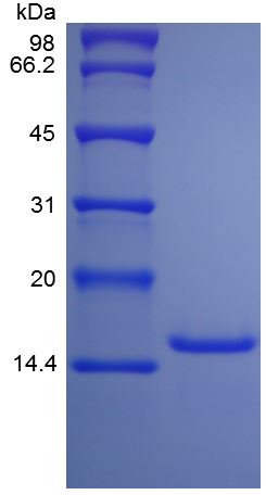 Approximately 14.3 kDa, a single non-glycosylated polypeptide chain containing 127 amino acids. |