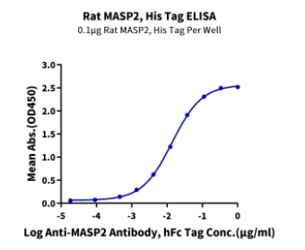 | Bio-activity : | Immobilized Rat MASP2, His Tag at 1μg/ml (100μl/well) on the plate. Dose response curve for Anti-MASP2 Antibody, hFc Tag with the EC50 of 13.9ng/ml determined by ELISA. |