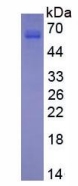 Bio-activity : | Matrix Metalloproteinase 13 (MMP13) is a member of the matrix metalloproteinase (MMP) family. MMP13 has been proposed to participate in aggrecan degradation associated with osteoarthritis and cleavage of type II collagen in osteoarthritic cartilage explants and in tumor progression and metastasis. In addition, it can cleave type I, III, IV, IX, X and XIV collagens and fibronectin. MMP13 is likely to play a crucial role in the modulation of extracellular matrix degradation and cell-matrix interactions. Although gelatin zymography is mainly used for the detection of the MMP2 and MMP9, it also can be used for MMP13 dection. Briefly, various concentrations of MMP13 (1000ng, 500ng, 250ng, 125ng) were denatured by SDS loading buffer, electrophoresed through sodium dodecylsulphat- polyacrylamide gel (SDS-PAGE; 10% gels) containing gelatin (1mg/mL) with nonreducing conditions. After renaturation, incubation and CCB-stained, active MMP13 would hydrolyze gelatin nearby, which was indicated by the white bands on the gel. In this experiment we use heat-denatured MMP13 protein as negative control, and blood sample as positive control. |