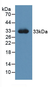 Predicted Molecular Mass: 29.8 kDa Accurate Molecular Mass: 33 kDa |