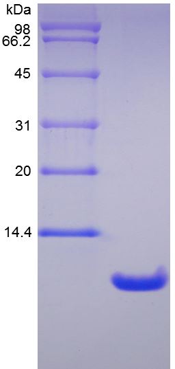 CXCL7 is a small cytokine which is also an isoform of Beta-Thromboglobulin or Pro-Platelet basic protein belonging to the CXC chemokine family and it is released in large amounts from platelets following their activation. CXCL7 stimulates DNA synthesis, mitosis, glycolysis, intracellular cAMP accumulation, prostaglandin E2 secretion, and synthesis of hyaluronic acid and sulfated glycosaminoglycan. It also stimulates the formation and secretion of plasminogen activator by human synovial cells. Recombinant Rat CXCL7 contains 62 amino acids which is a single non-glycosylated polypeptide chain. In addition, The rat CXCL7 shares 58 % and 77 % a.a. sequence identity with human and mouse CXCL7. |
