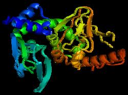 cAMP-dependent protein kinase type II-beta regulatory subunit is an enzyme that in humans is encoded by the PRKAR2B gene. cAMP is a signaling molecule important for a variety of cellular functions. cAMP exerts its effects by activating the AMP-activated protein kinase (AMPK), which transduces the signal through phosphorylation of different target proteins. The inactive holoenzyme of AMPK is a tetramer composed of two regulatory and two catalytic subunits. cAMP causes the dissociation of the inactive holoenzyme into a dimer of regulatory subunits bound to four cAMP and two free monomeric catalytic subunits. Four different regulatory subunits and three catalytic subunits of AMPK have been identified in humans. The protein encoded by this gene is one of the regulatory subunits. |