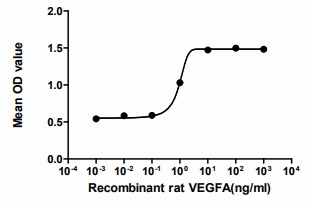 Vascular endothelial growth factor A (VEGF-A), a glycosylated mitogen, is known to be a vascular permeability factor and an endothelial cell growth factor secreted by the smooth muscle and endothelial cells. It has been reported that VEGF-A induces vascular permeability and growth, promotes monocyte/macrophage migration, and inhibits cell apoptosis and so on. To test the effect of VEGF-A on cell proliferation of ECV304 endothelium cell line, cells were seeded into triplicate wells of 96-well plates at a density of 2,000 cells/well and allowed to attach overnight, then the medium was replaced with serum-free standard DMEM prior to the addition of various concentrations of VEGFA. After incubated for 72h, cells were observed by inverted microscope and cell proliferation was measured by Cell Counting Kit-8 (CCK-8). Briefly, 10µL of CCK-8 solution was added to each well of the plate, then measure the absorbance at 450nm using a microplate reader after incubating the plate for 1-4 hours at 37°C . |