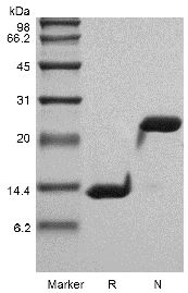 We recommend that this vial be briefly centrifuged prior to opening to bring the contents to the bottom. Reconstitute in sterile distilled water or aqueous buffer containing 0.1 % BSA to a concentration of 0.1-1.0 mg/mL. Stock solutions should be apportioned into working aliquots and stored at ≤-20 centigrade. Further dilutions should be made in appropriate buffered solutions. |