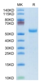 Molecular Mass : | The protein has a predicted MW of 51 kDa. Due to glycosylation,the protein migrates to 50-60 kDa based on Tris-Bis PAGE result. |