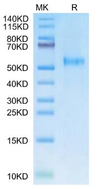 | Molecular Mass : | The protein has a predicted MW of 35.39 kDa. Due to glycosylation, the protein migrates to 50-60 kDa based on Tris-Bis PAGE result. |